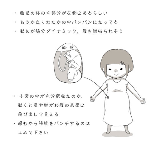 上記の絵のようにお腹の中で激しく動き回ってます。