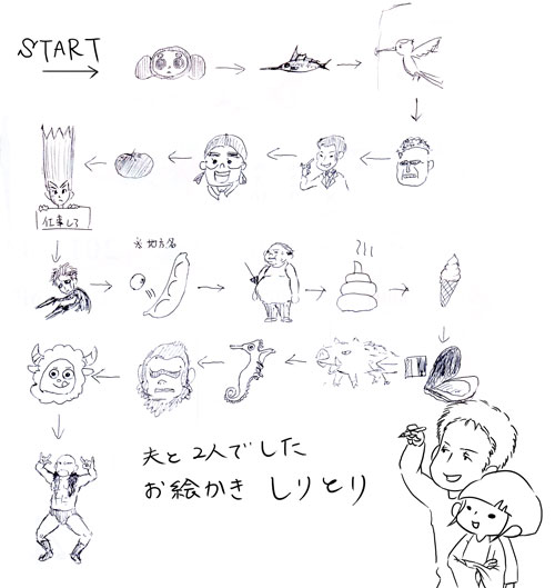 外に出たがりの夫には申し訳なかったですが、家でまったりお絵かきしりとりをしました。